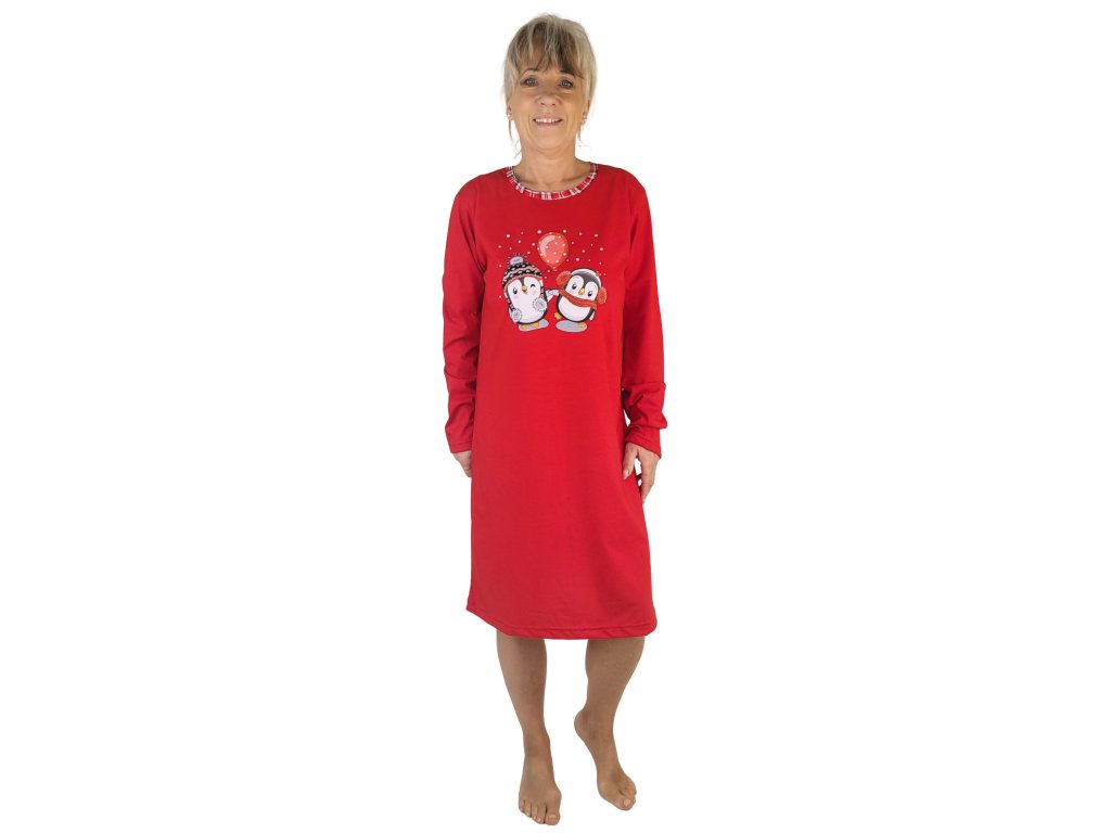 Krásná dámská noční košile s vánočním motivem. Dlouhé rukávy, délka pod kolena. Vyrobeno z kvalitní 100% Bavlny. Navrženo do setu s vánočním pyžamem BÁRA (v pánském provedení DAVID a dětském VALI).