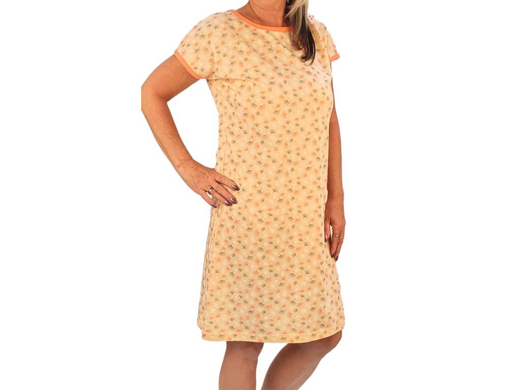 Krátká dámská noční košile se střihem kimono. Vyrobena z velmi příjemné certifikované bavlny. Krátké rukávy. Délka noční košile nad kolena.Doplňkové parametry