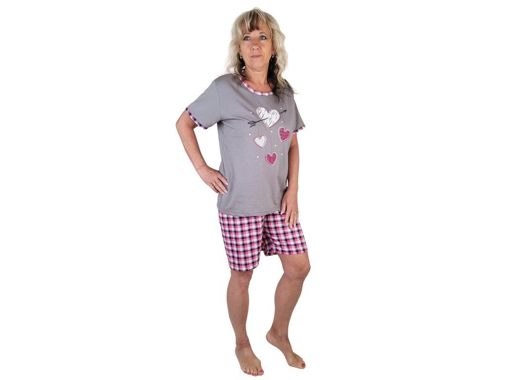 Dámské bavlněné krátké pyžamo, Jednobarevné triko s potiskem na předním díle a vzorovanými kalhoty.Doplňkové parametry