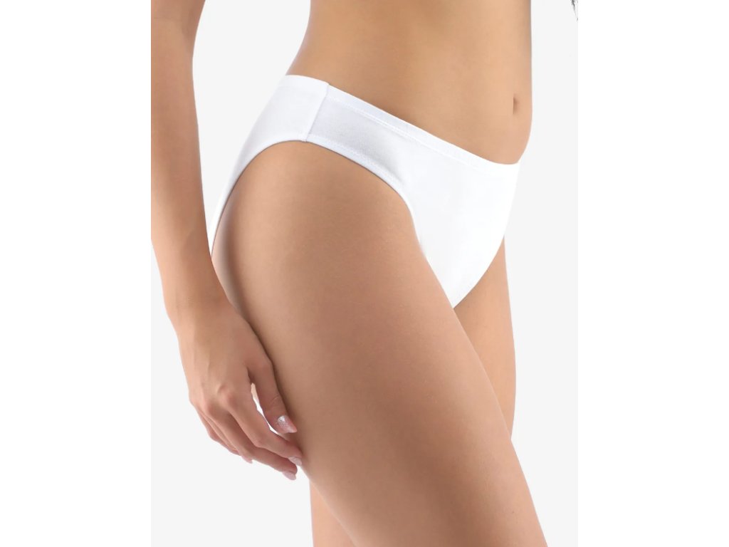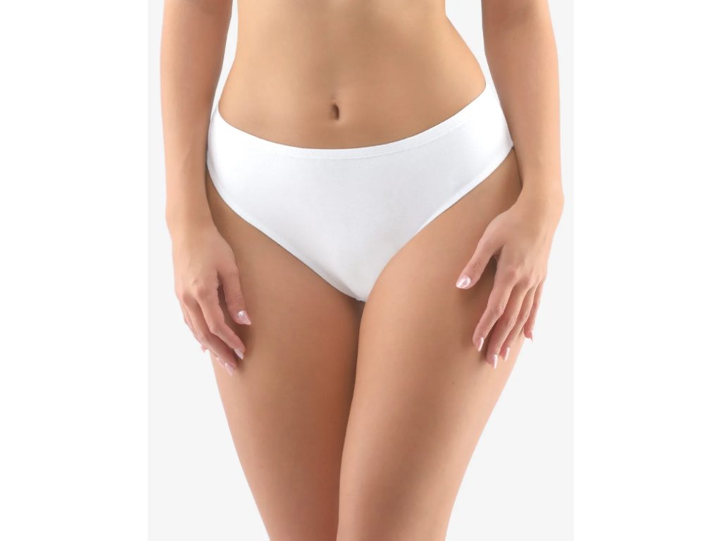 Kalhotky klasického střihu, dámské šité prádlo. V pasovém kraji je zašitá úzká pruženka. V nohavičkách je zašitá úzká pruženka. Kalhotky jsou jednobarevné.