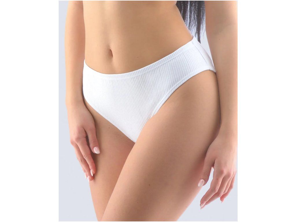 Kalhotky klasického střihu, dámské šité prádlo. V pasovém kraji je zašitá úzká pruženka. V nohavičkách je zašitá úzká pruženka. Kalhotky jsou jednobarevné. Použitý žebrový úplet je velmi příjemný na nošení a dodává prádlu dostatečnou pružnost.