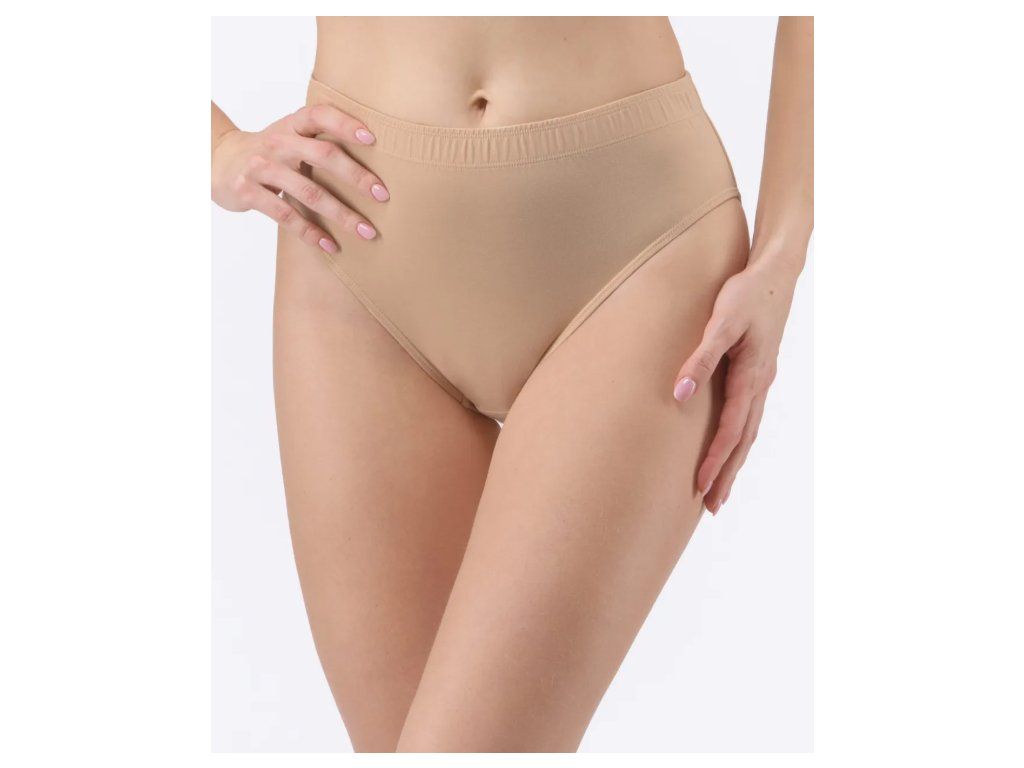 Kalhotky klasického střihu, dámské šité prádlo. V pasovém kraji je zašitá širší pruženka. V nohavičkách je zašitá úzká pruženka. Kalhotky jsou jednobarevné.