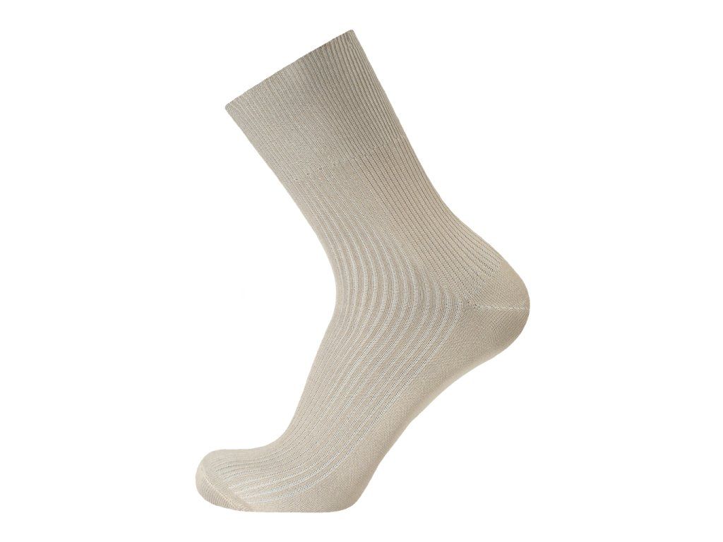 Zdravotní ponožky s vyšším pohodlným lemem. Lem je jednoduchý, řádkový bez gumičky, takže nesvírá a ponožka je tak vhodná i pro diabetiky. Díky žebrování v nártu a v lýtkové části se ponožka dobře přizpůsobí noze a pohodlně se nosí. Do paty a špice je přidáno polyamidové vlákno, které zvyšuje odolnost proti oděru a prodlužuje tak životnost ponožky.
