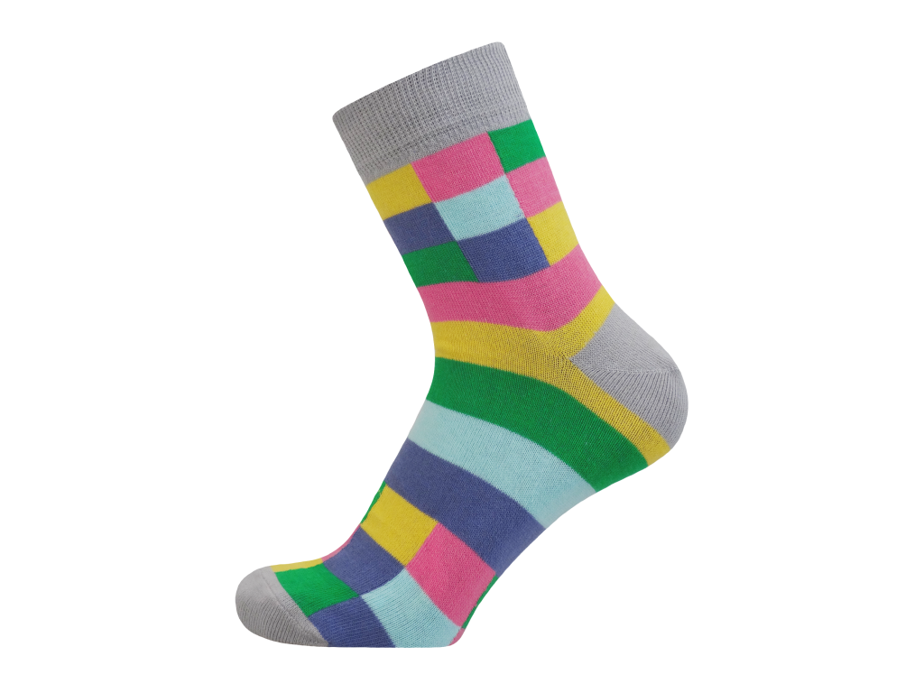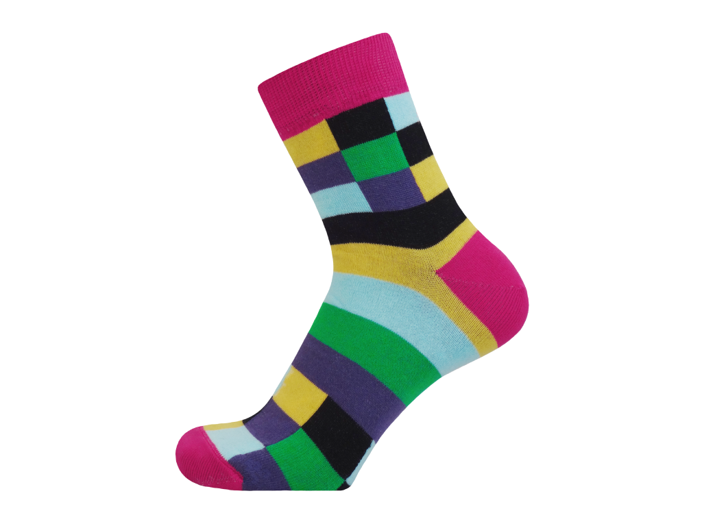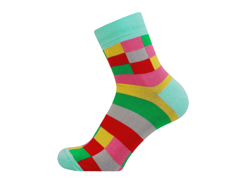 Moderní dětské bavlněné ponožky z velice kvalitního materiálu v moderním kostkovaném provedení. Obsahují speciálně upravené polypropylnové vlákno POLYPROPYLEN-SILTEX (více informací o tomto vláknu v odkazu). Ponožky mají pohodlny převěšený lem, který je komfortní k dětským nohám při celodenním nošení.