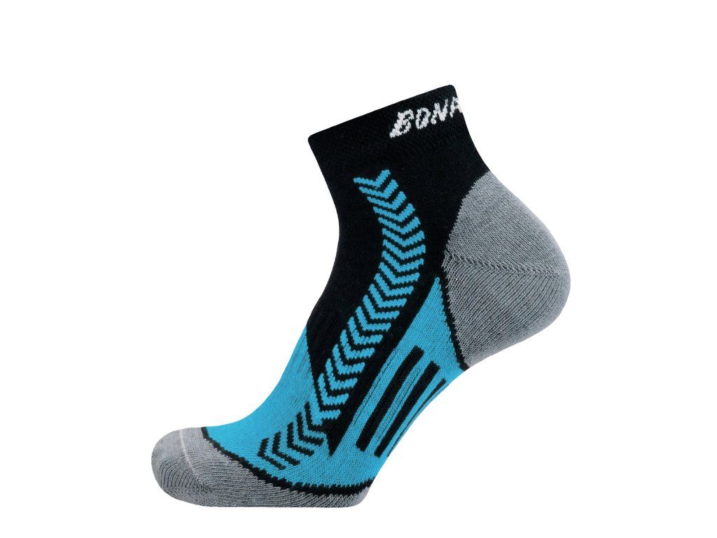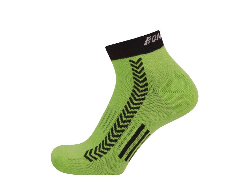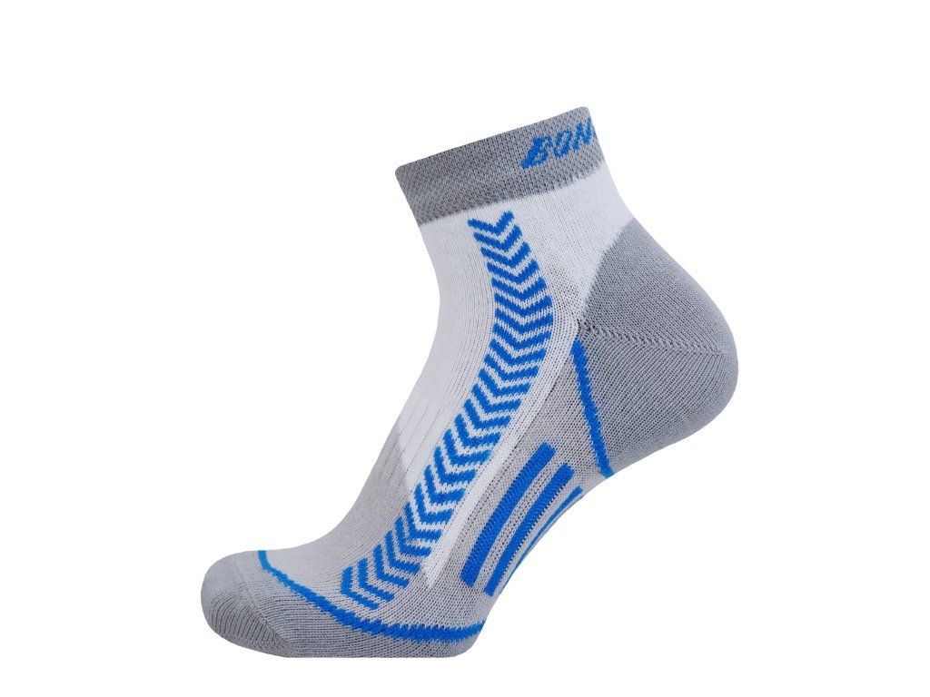 Atraktivní kotníkové sportovní ponožky s funkčními prvky - elastický fixační pruh v nártu ponožku dobře drží na noze a nedochází tak k jejímu přetáčení či sjíždění v botě. Ponožky obsahují speciálně upravené polypropylenové vlákno POLYPROPYLEN-SILTEX (více informací kliknutím na odkaz).