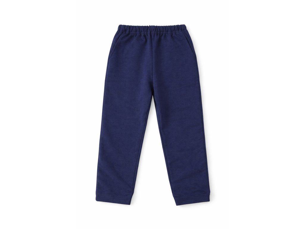 Dětské bavlněné tepláčky s jednou postranní kapsou. Nohavice jsou rovné, bez nápletu.Doplňkové parametry