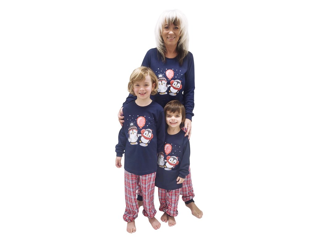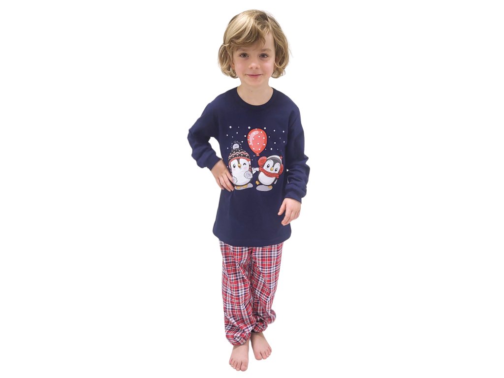 Dětské dlouhé pyžamo s vánočním motivem. Rukávy i nohavice jsou zakončeny praktickými náplety. Pyžamo je navrženo do setu s dámským pyžamem BÁRA 1, pánským pyžamem DAVID 1 a noční košilí NELA 4.