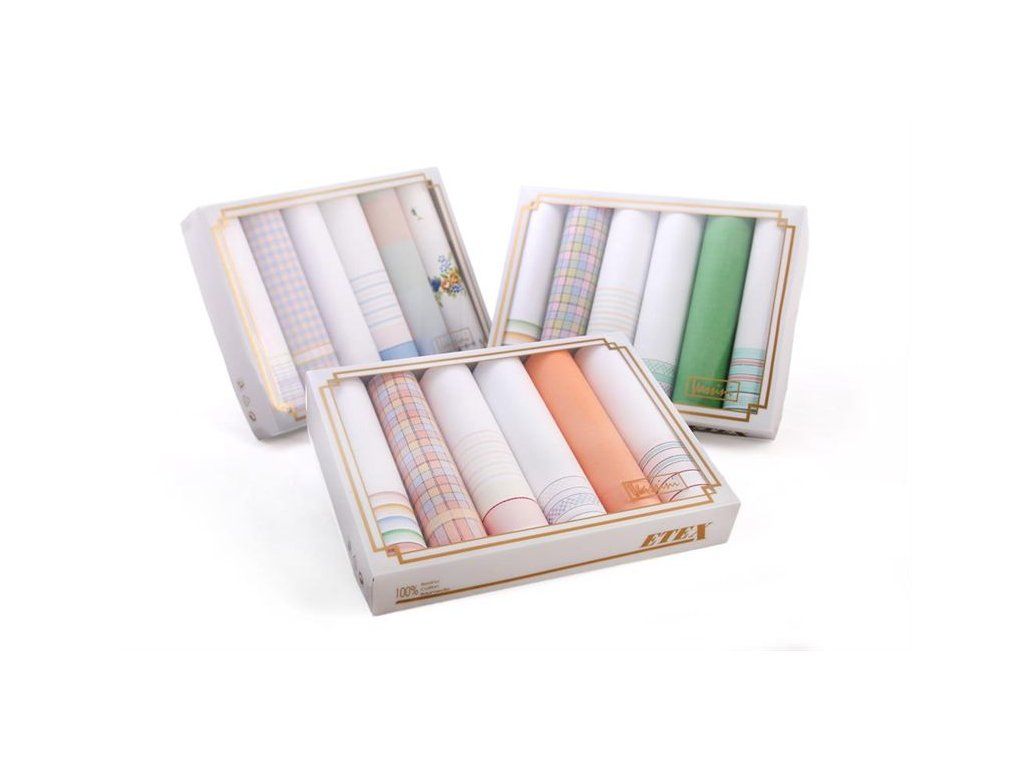Kvalitní dámské kapesníky ze 100% česané bavlny. Dárkové balení - 6 kusů, mix vzorů.
