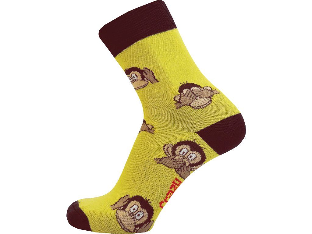 Klasické ponožky s veselým motivem opic z kolekce CRAZY SOCKS®. Ponožky mají pohodlný převěšený vaflový lem. Díky přidanému polyamidovému vláknu jsou ponožky odolnější proti oděru.