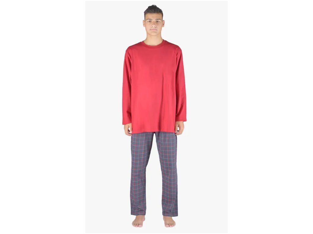 Pánské klasické pyžamo volného střihu z jemného úpletu Vám poskytne pohodlí během spánku. Kalhoty s oblíbeným vzorem káro doplňuje jednobarevné triko s dlouhými rukávy.