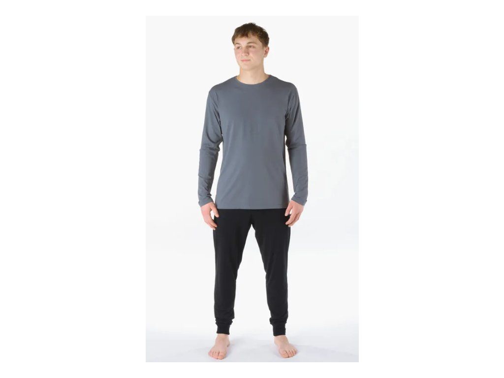 Pánské dlouhé pyžamo volného střihu z jemného úpletu s bambusovou viskózou Vám poskytne jedinečné pohodlí během spánku. Tričko je jednobarevné, kalhoty jsou ukončeny manžetou.