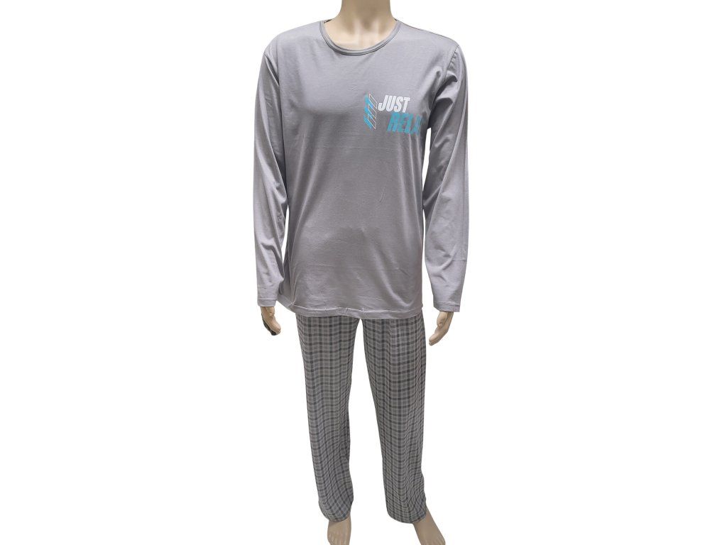 Pánské dlouhé bavlněné pyžamo. Vyrobeno z kvalitní certifikované 100% bavlny. Střih pyžama je volného strihu s výstřihem do U. Zakončení rukávů a kalhot je bez nápletu (manžety). Lem u krku je v barvě kalhot. Na prsou praktická kapsička.Doplňkové parametry