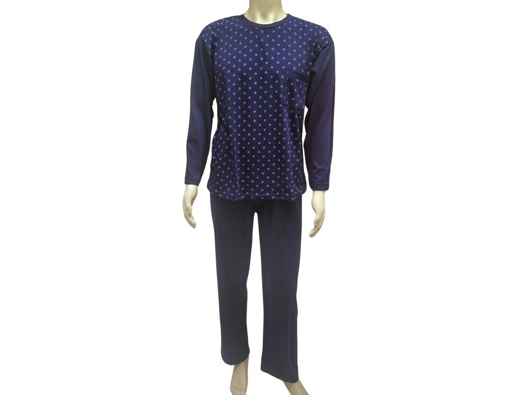 Pánské dlouhé bavlněné pyžamo. Vyrobeno z kvalitní certifikované 100% bavlny. Střih pyžama je volného strihu s výstřihem do U. Zakončení rukávů a kalhot je bez nápletu (manžety). Lem u krku je v barvě kalhot. Na prsou praktická kapsička.Doplňkové parametry
