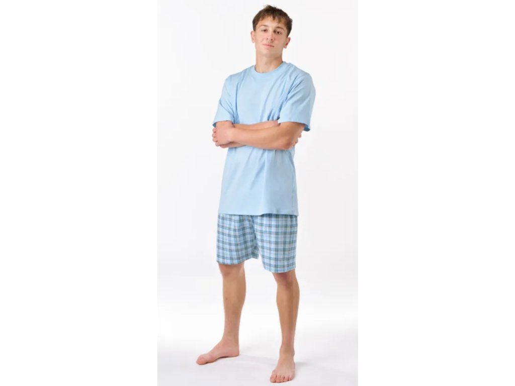 Pánské pyžamo volného střihu z jemného úpletu Vám poskytne pohodlí během spánku. Krátké kalhoty s oblíbeným vzorem káro doplňuje triko s krátkými rukávy.