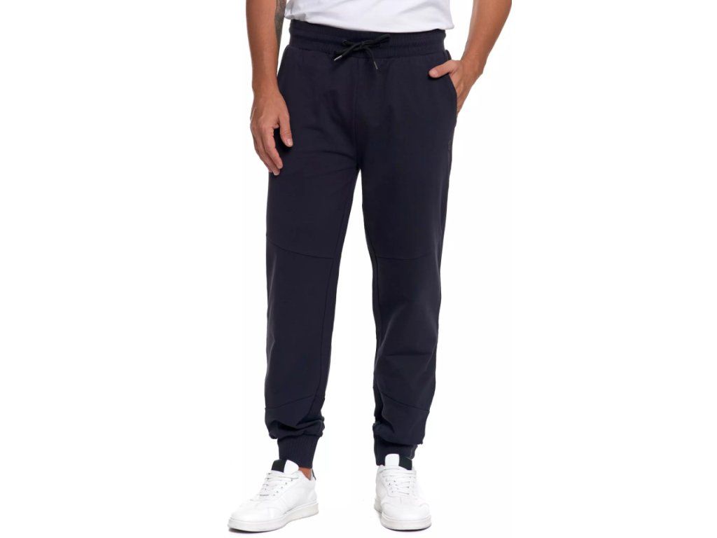 Tyto pohodlné a stylové pánské tepláky vyrobené z vysoce kvalitní bavlny s přídavkem elastanu jsou perfektní volbou pro každodenní nošení a aktivní chvíle. Měkký materiál zajišťuje pohodlí a volnost pohybu, zatímco elastický pas s nastavitelnou stahovací šňůrkou perfektně padne. Mají praktické boční kapsy a pohodlné manžety na nohavicích. Skvělá kombinace pohodlí, stylu a funkčnosti je perfektním doplňkem každého pánského šatníku.