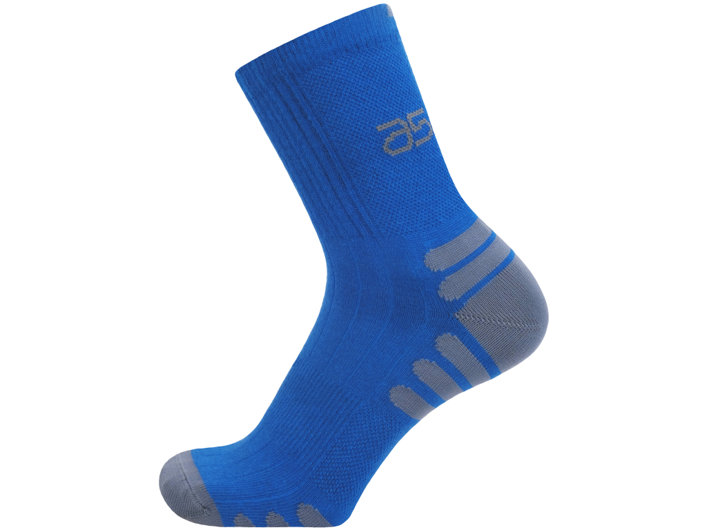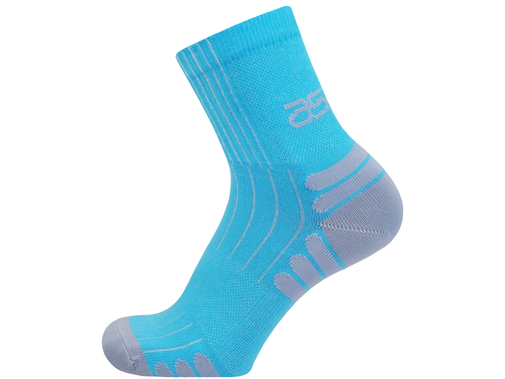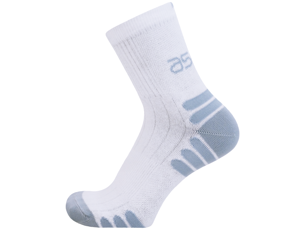 Pohodlné sportovní ponožky z naší nové sportovní kolekce ASOX. Díky svému vypletení jsou vhodné na všechny druhy outdoorových i indoorových sportů. Ponožky mají fixační pruh v nártu, aby nedocházelo k jejímu přetáčení v botě. V nártu a lýtku najdeme pohodlnou žebrovanou pleteninu, která přispívá k pohodlí při nošení. Do paty a špice je přidáno polyamidové vlákno, které zvyšuje odolnost ponožky proti prodření a mechanickému opotřebení.