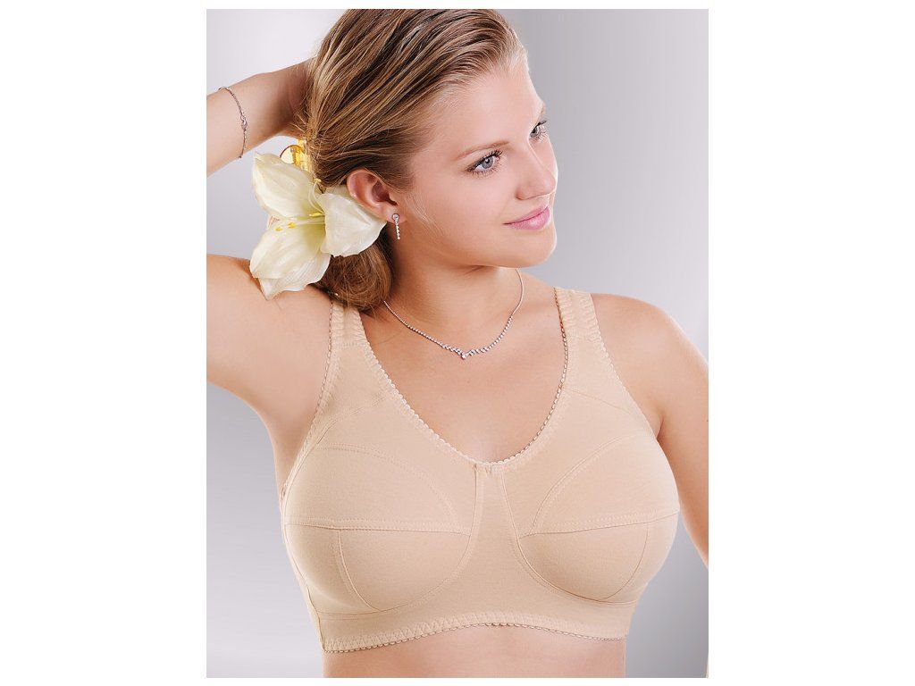 Bavlněná podprsenka velmi pohodlného střihu, vhodná pro ženy s každým typem poprsí. Ramínka jsou širší, vypodložená tak, aby bylo dosaženo maximálního komfortu. Je příjemná na běžné nošení, tak i na sport. Použitý antialergický materiál je vhodný i pro ženy, které trpí alergiemi, či mají zdravotní problémy v oblasti poprsí. Klasické zapínání vzadu. Váháte-li s výběrem velikosti, zvolte raději tu menší, materiál je pružný.Doplňkové parametry
