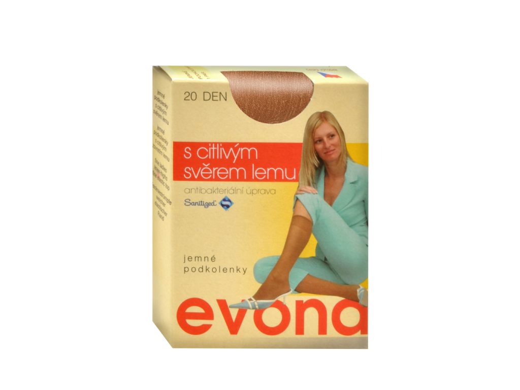 Standardní dámské podkolenky s jemností 20 DEN a jemným svěrem lemu.